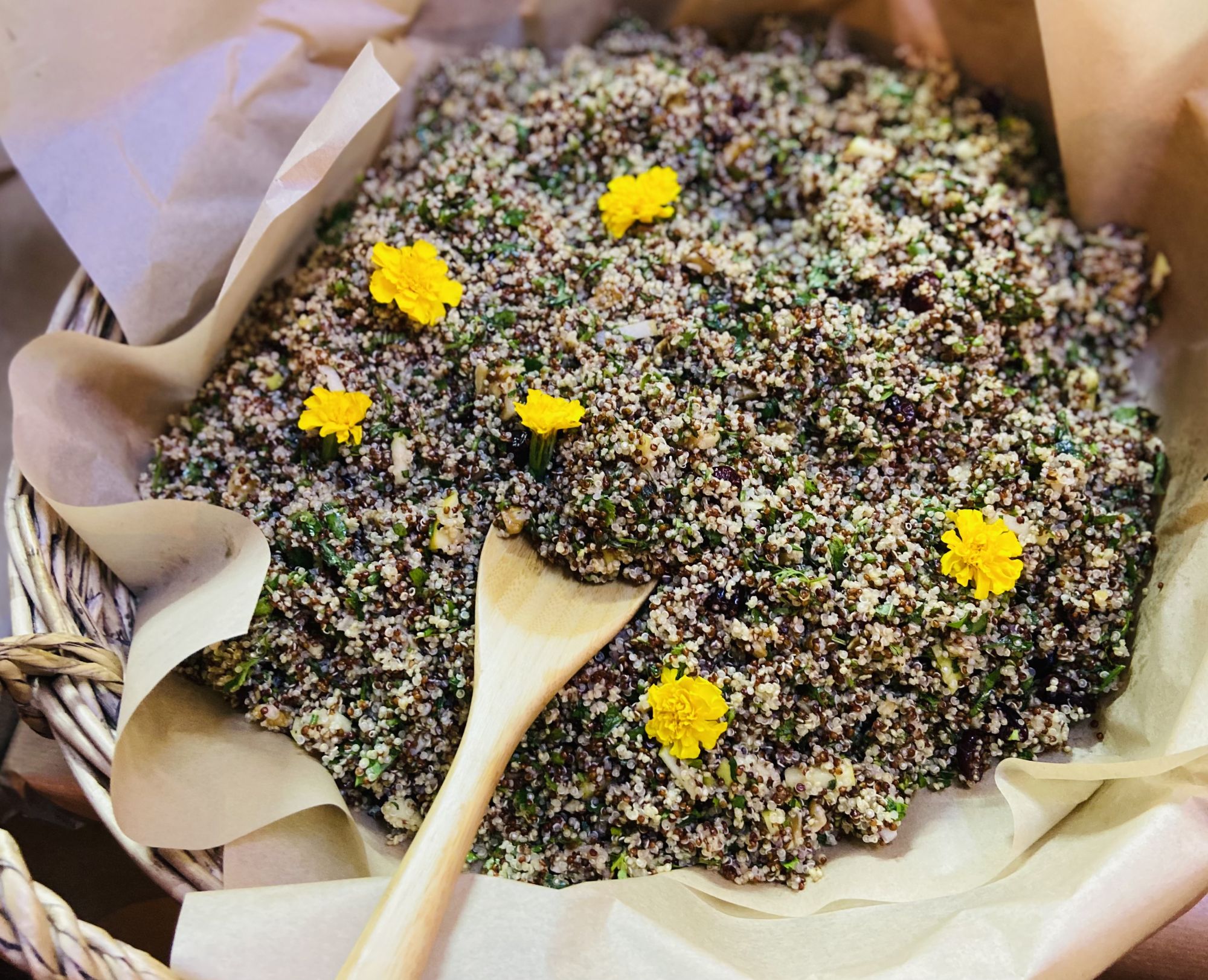 מכיל קינואה, חתיכות בטטה, ירוקים מסוגים שונים.